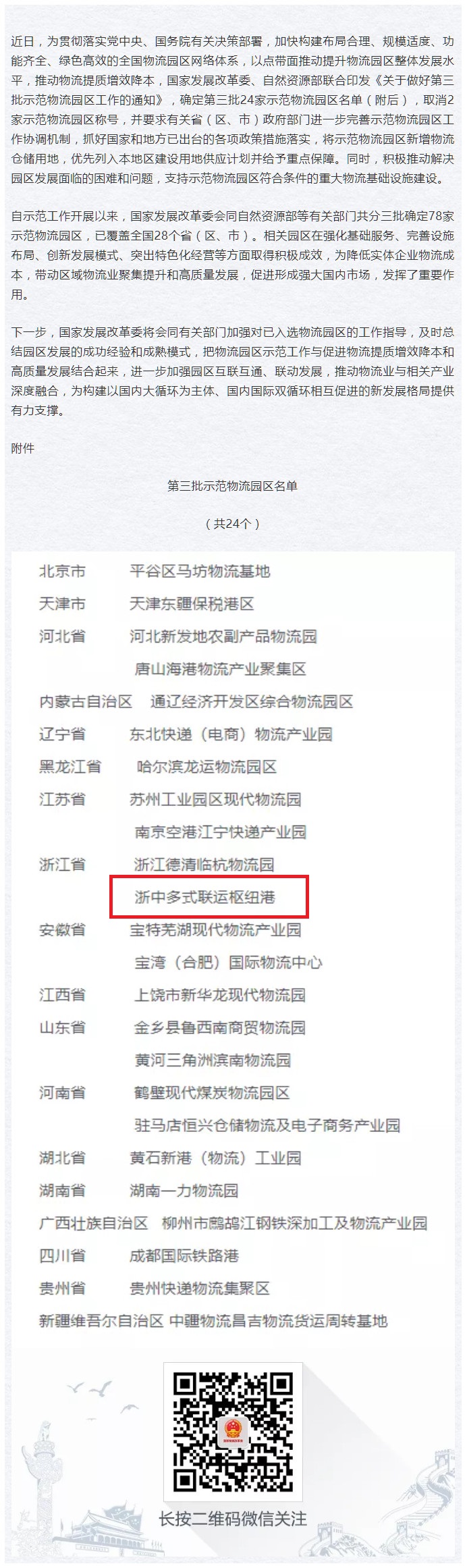 國家發展改革委 自然資源部聯合發布第三批示范物流園區名單